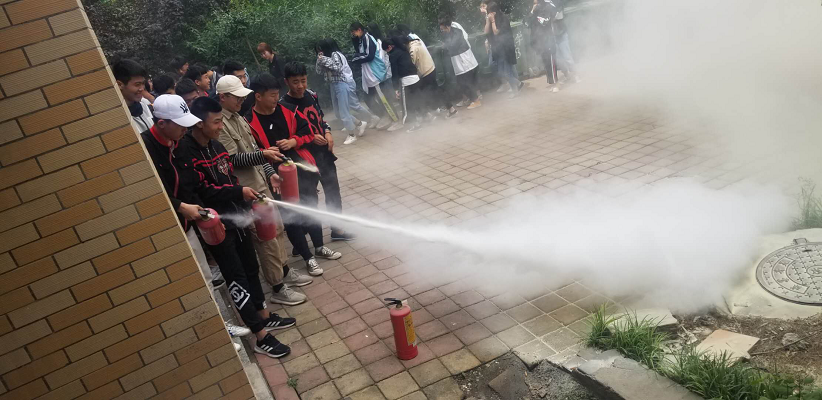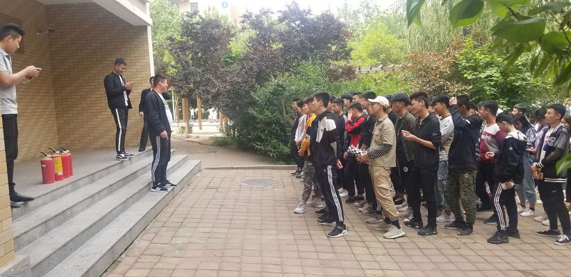 2019年5月13日公寓管理中心姜红政、孙园东,技工二部聂昆明、李志顺老师、学生代表在三号公寓举行了消防演练,一、首先姜红政老师强调公寓安全的重要性,高校发生的火灾70%至80%在学生宿舍等人员活动较为集中的场所。学生是宿舍的主人,预防学生宿舍火灾,学生起着十分重要的作用。如果学生消防意识淡薄,消防常识缺乏,扑救初起火灾和逃生自救能力低下,一旦发生火情,势必酿成火灾,造成严重后果。