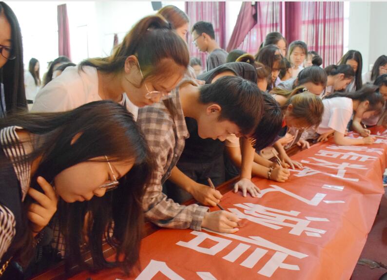 活动内容:学院领导宣读关于国家助学贷款申请及还款注意事项及相关规定,老师带领同学们宣誓,学生代表发言,最后护理学院全体学生在条幅上签下了他们的姓名,表现出了同学们坚定做一名诚信人的决心。