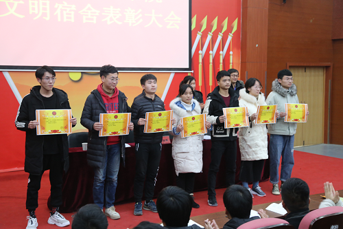 各院系获得安全文明宿舍的学生代表上台领奖。