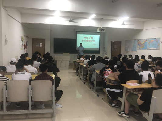 公寓中心姜老师主要从防火、防盗窃、防打架、交通安全、网络安全,烟雾报警器的管理规定等方面对同学进行了培训。并用具体实例重点强调防火安全,再一次强调严禁在宿舍内吸烟、使用大功率电器等,教育学生提高自我防范意识!对近几年学院各个院系发生的案件进行汇总,让大家提高警惕,不要满不在乎,看看这些鲜活的事例:打架带来的血的教训和法律的惩罚、晚上睡觉不关宿舍门丢失电脑、因为吸烟引燃被褥、因没关电脑引起自燃而烧坏宿舍橱柜、把钱放到床上同宿舍作案等等,让同学们深刻认识到各种安全隐患的无处不在和带来的严重后果,给每一位同学敲响警钟,希望同学们看后引以为戒,并把今天的学习内容告知同宿舍和周边的同学,让安全深入每一位同学的内心,安安全全度过生活中的每天。