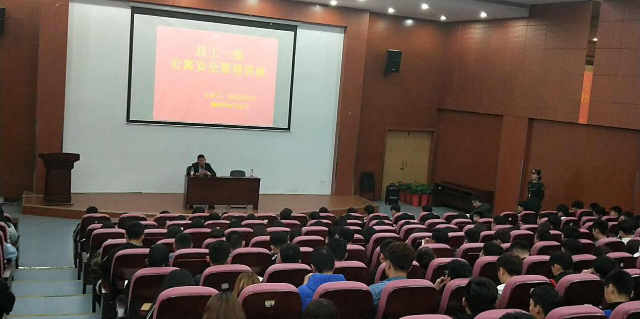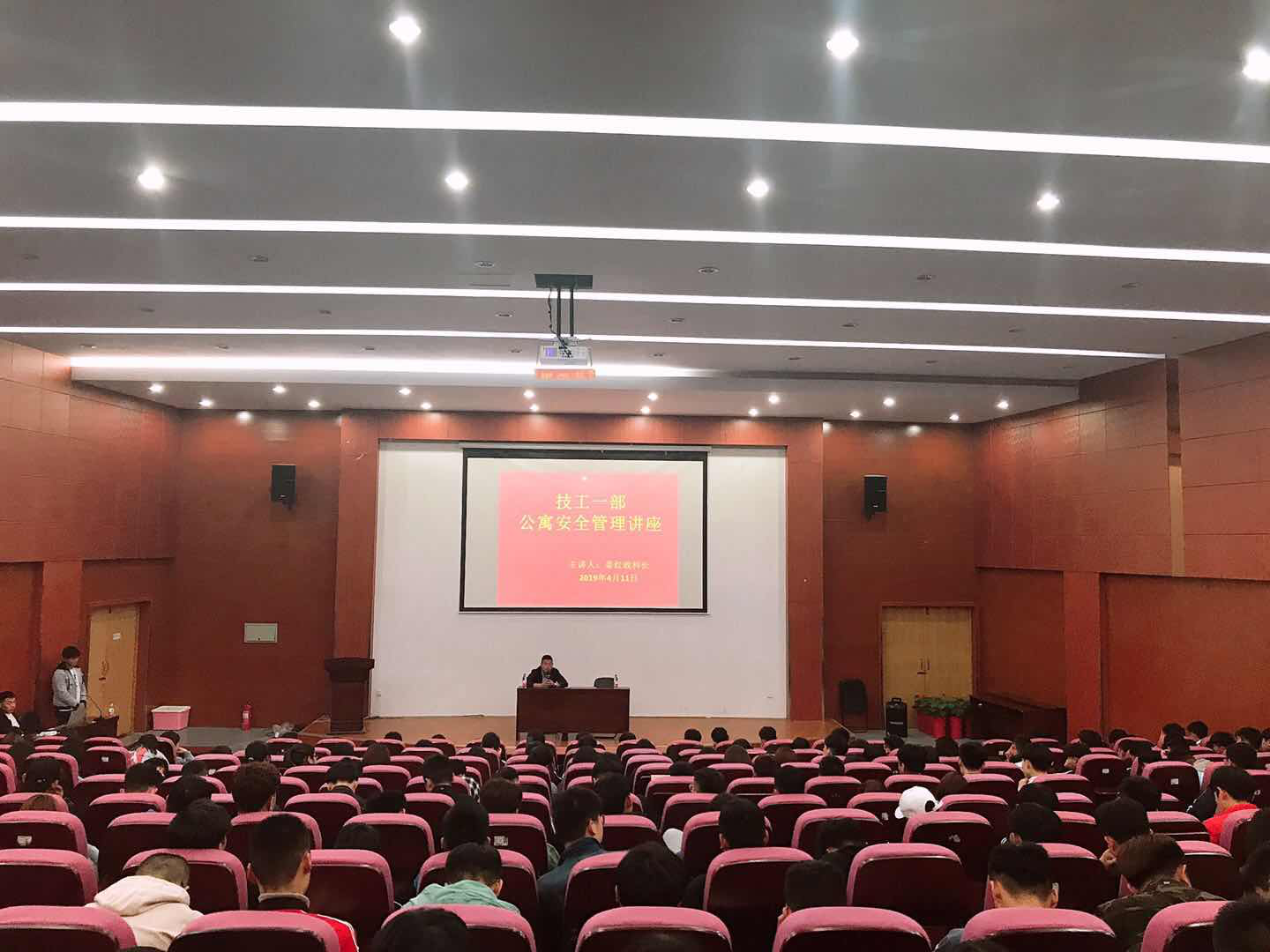 2019年4月11日晚上7:00,公寓中心姜红政老师在科研楼101对技工部学生宿舍干部进行本学期 “公寓安全培训会议”。本次会议围绕学生公寓内务标准和公寓中出现的各种不安全因素进行讲解。