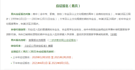 上半年应征报名:2020年12月10日至2021年2月20日;