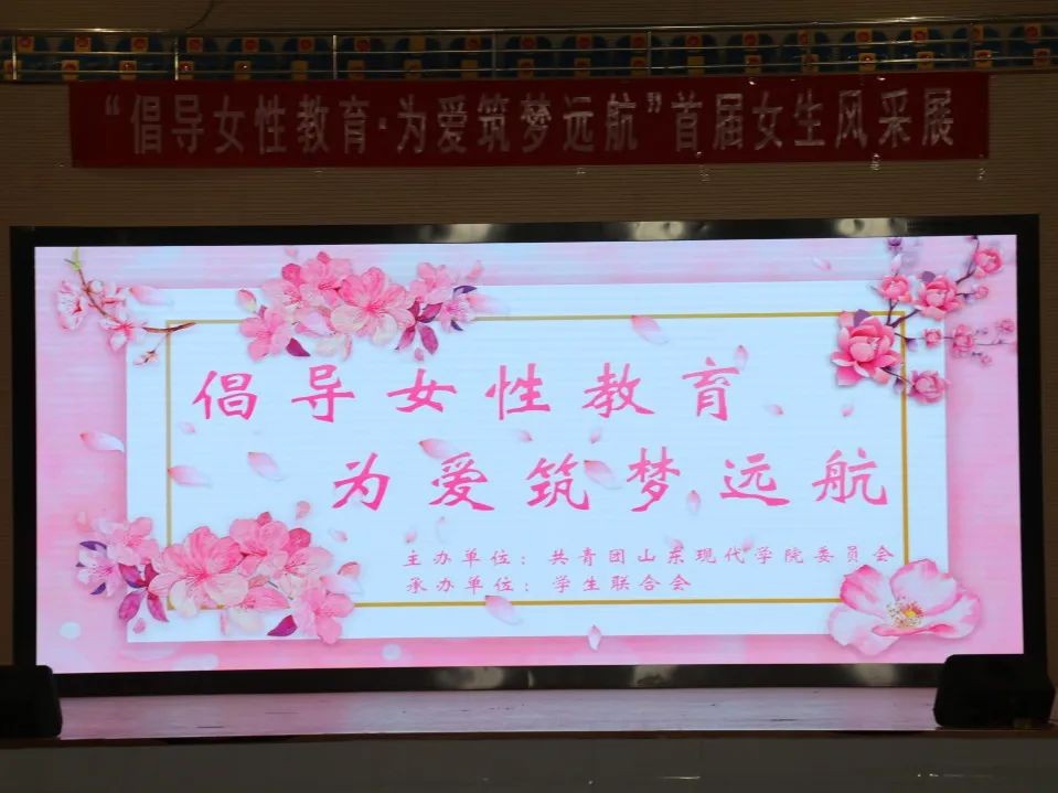 2021年3月25日14时,由共青团山东现代学院委员会主办、学生联合会承办的“倡导女性教育·为爱筑梦远航”首届女生风采展活动在体育馆隆重举行。校团委许建栋老师及各二级院系学管老师、辅导员老师出席本次活动。