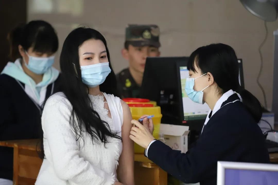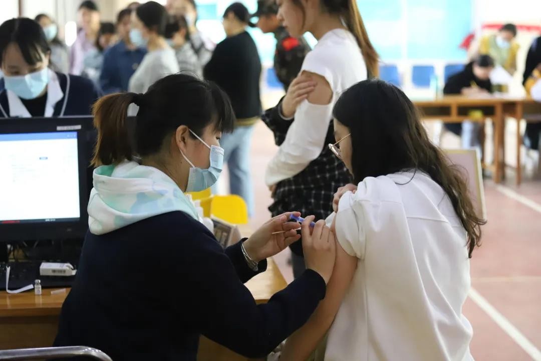 4月14日,我校采取“分时、分批”的方式,在新体育场为师生开展疫苗接种工作。