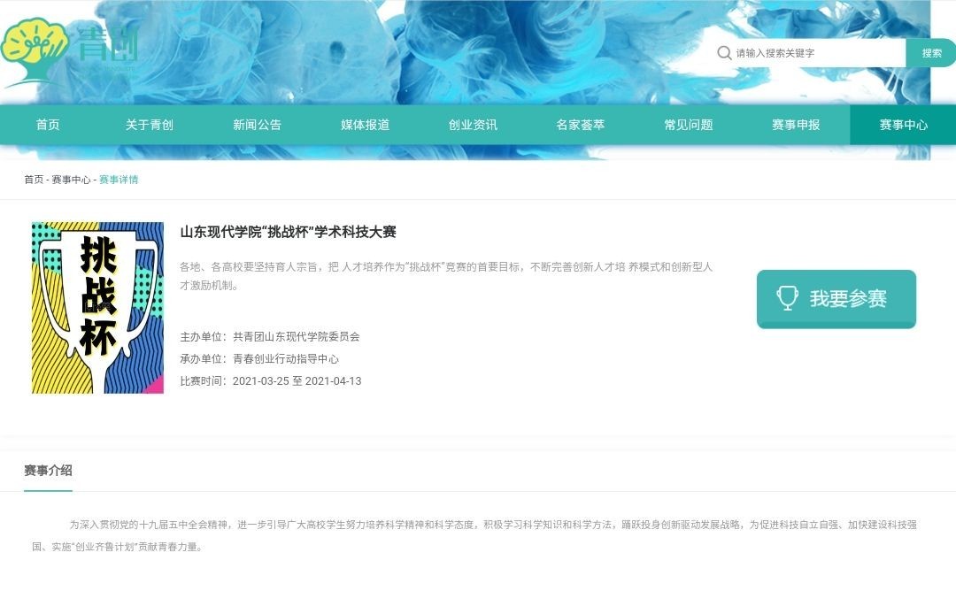根据《关于组织开展第十七届“挑战杯”全国大学生课外学术科技作品竞赛的通知》要求,为深入贯彻党的十九届五中全会精神,进一步引导广大高校学生努力培养科学精神和科学态度,积极学习科学知识和科学方法,踊跃投身创新驱动发展战略,为促进科技自立自强、加快建设科技强国、实施“创业齐鲁计划”贡献青春力量,我校将举办2021年第十七届“挑战杯”全国大学生课外学术科技作品竞赛和创新创业竞赛。