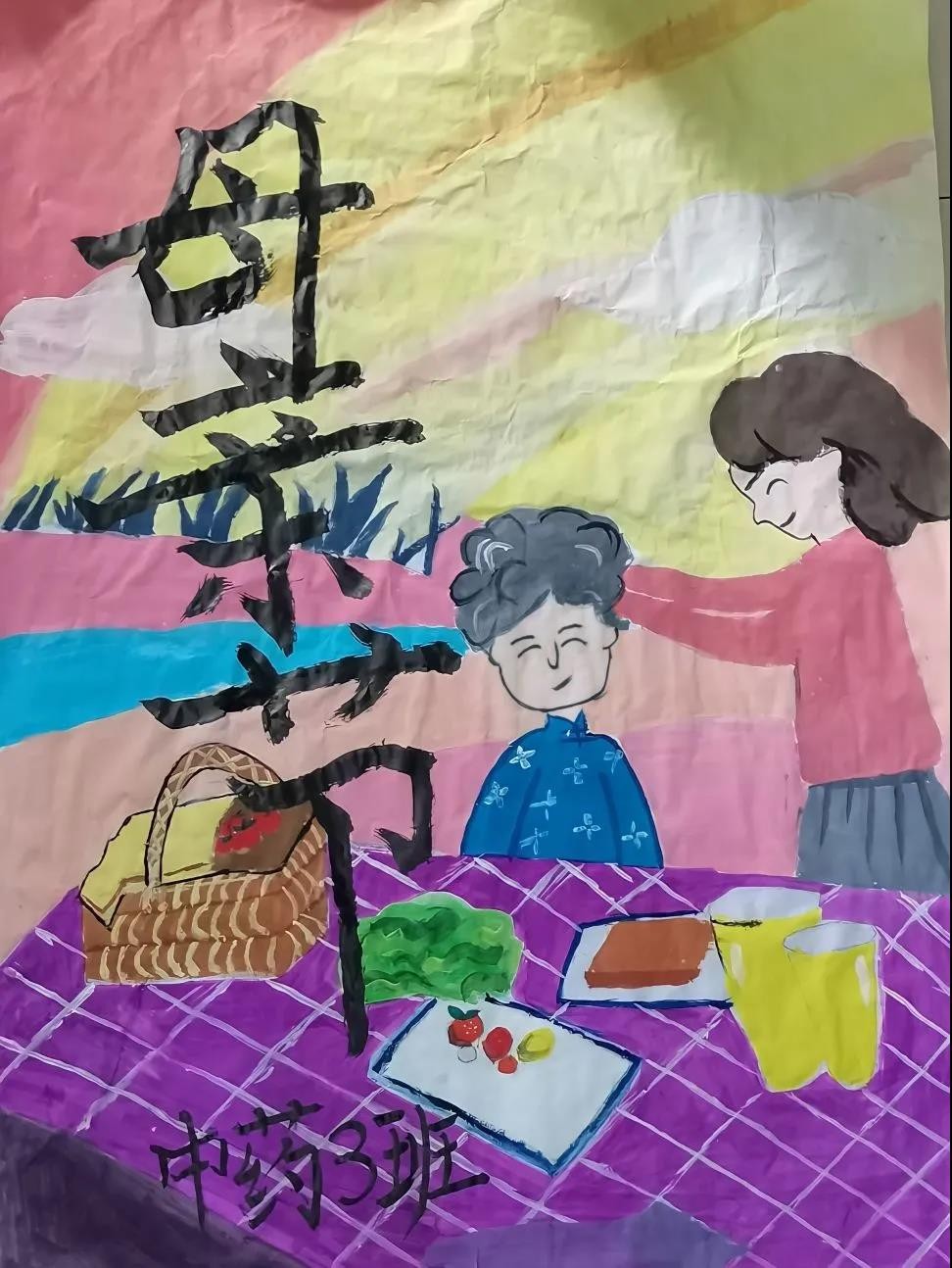 五年大专部的同学以画笔为抒写爱意的途径,开展“舐犊情深·感恩伟大的母爱” 母亲节板报活动,将母亲美好的样子同静好的岁月一同锁在了画纸上,想要留住母亲的片刻年华。