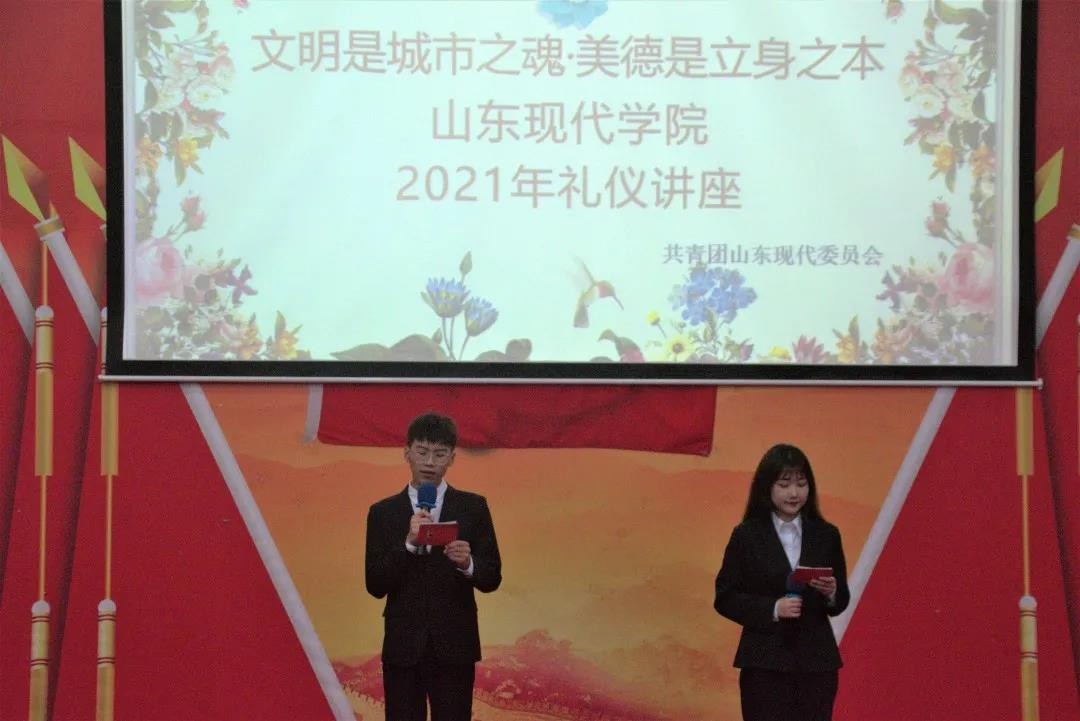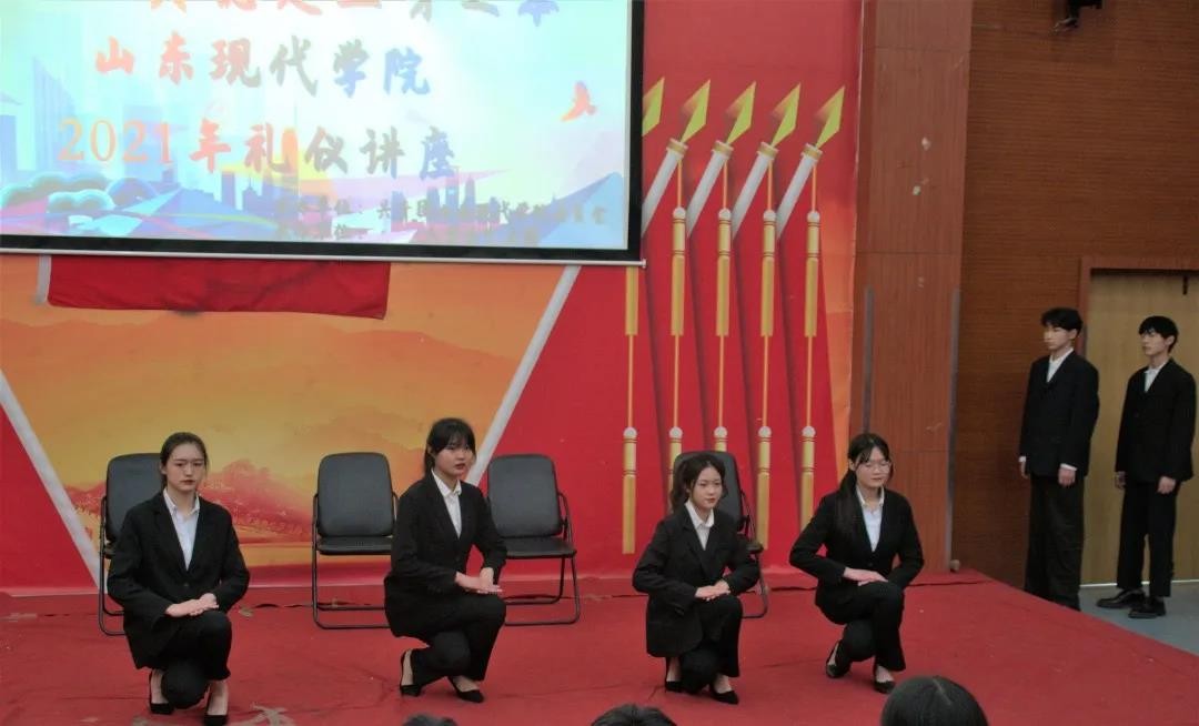2021年5月17日山东现代学院举办“文明是城市之魂,美德是立身之本”为主题的礼仪讲座在博学楼101举办。