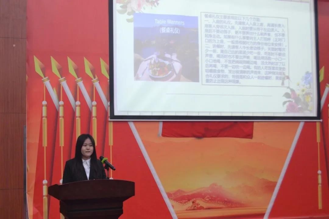 许振通同学在讲解过程中与同学们进行互动,她从各个方面讲解了礼仪在当代社交生活的重要性。