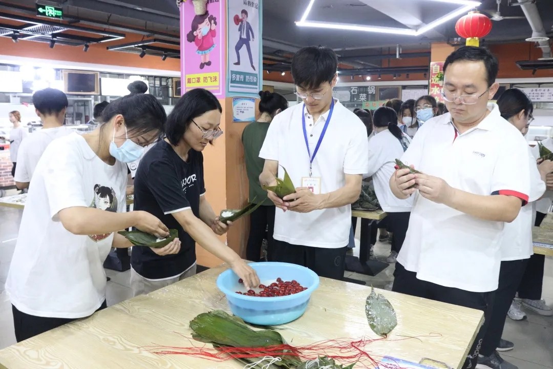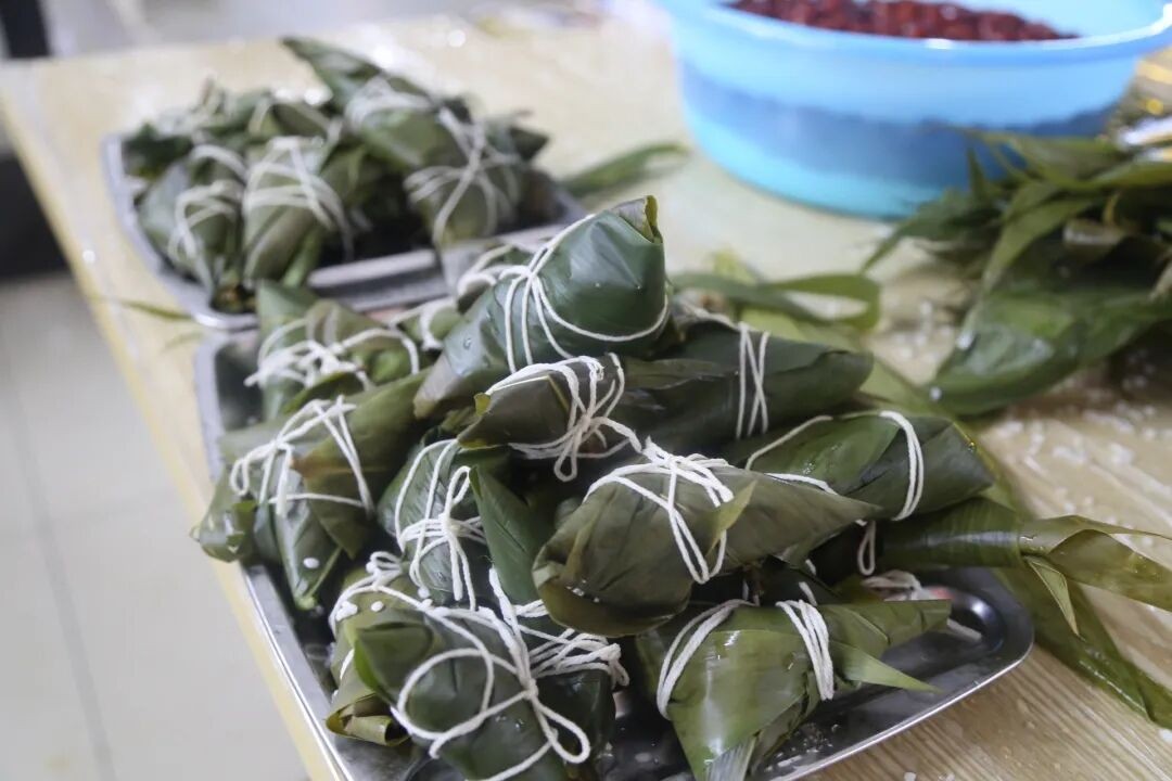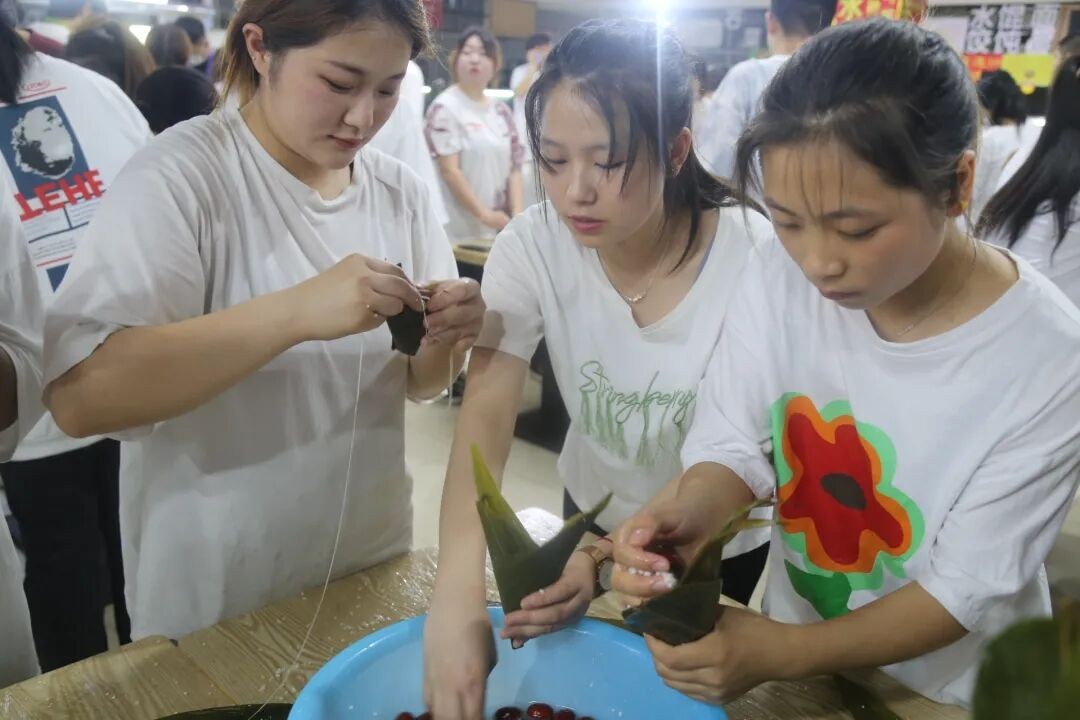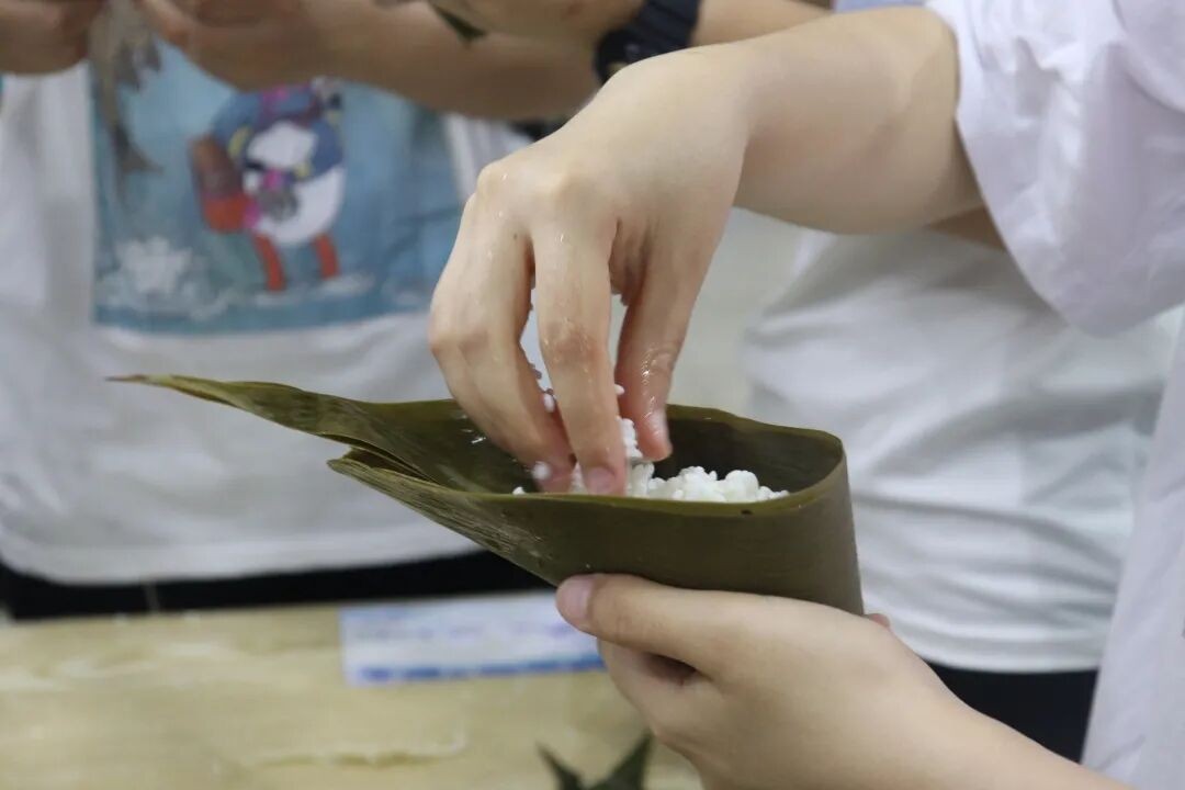 经过一个多小时的努力,大家收获颇丰。一盆盆粽子被送到餐厅后厨,煮好后,由团委工作人员逐一分发到老师和同学们手中,同学们品尝着亲手包的粽子,粽叶散发着清香,咬一口,甜而不腻。本次活动在浓浓的粽香和师生们的欢声笑语中落下帷幕,也为即将到来的端午节增添了几分节日的愉悦,更加拉近了师生间的情谊。
