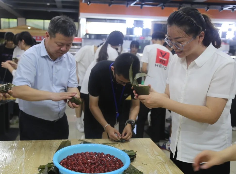 “近端午,粽飘香。”端午节是我国传统节日之一,也是中国首个入选世界非物质文化遗产的节日。为弘扬中华优秀传统文化,激发同学们的爱国情怀,6月10日,我校组织在锄禾餐厅开展了以“炎夏粽叶飘香,情系现代端午”为主题的包粽子活动。我校院长助理吴启军,学生处负责人、人文学院执行院长刘锦绣,以及各二级学院老师、学生代表来到现场,一起包粽子,共同体悟浓厚的传统文化底蕴。