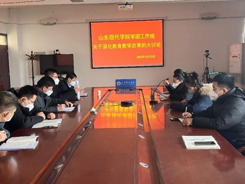 山东现代学院学生处于2022年12月10日上午在知新楼301开展了关于学团工作深化教育教学改革的大讨论。与会的领导有孙忠军书记、房昌盛院助、刘锦绣处长以及各二级学院相关负责同志。