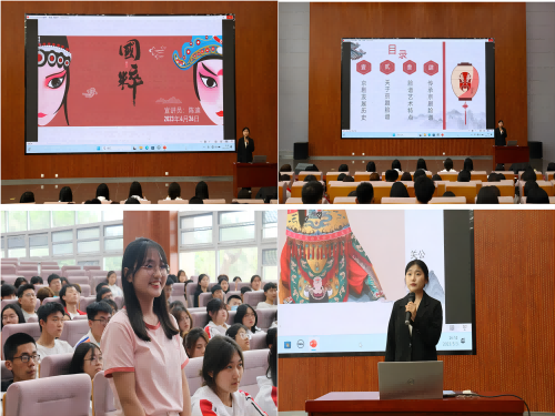 为弘扬中华优秀传统文化,传承民族精神,我校持续开展“七个一”自我提升活动,创新开设德慧大讲堂,丰富学生校园文化生活。5月3日下午,山东现代学院德慧大讲堂文化宣讲团于图书馆报告厅进行京剧脸谱文化的宣传讲解。不入梨园,怎知春意如此。京剧,又称平剧、京戏,以北京为中心,遍及全国各地。京剧脸谱,中国特色的特殊化妆方法,颜色、线条各具意义,程序化的图案、性格化的艺术特点、夸张化的绘图,无不让人物更加传神。讲解期间主讲人与观众进行互动,学们积极回答问题。同一张脸,以谱为界,一半当下,一半传承。传统的文化,年轻的面孔,是和谐、是骄傲、是信仰,是力量。粹,千年脸谱;传,千年文化。此次活动在融会贯通中发扬创新优秀传统文化,赏京剧脸谱魅力,扬中华戏曲文化。