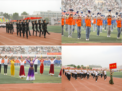 5月18日-19日,在山东现代学院新体育场成功举办了第十九届运动会。开幕式由常务院长帅相志主持,大会开始前举行了升旗仪式,党委书记赵友春宣布山东现代学院第十九届运动会开幕,国旗护卫队、彩旗队、花束队、各学院运动员方队依次入场,他们昂首挺胸、步伐整齐,充分展示了现代人奋发向上的精神风貌。在全体师生的共同努力下,本次运动会圆满成功。运动会是我校体育工作的一次检阅,更是广大师生精神面貌和综合素质的一次集中展示,是同学们走出宿舍、教室,走进大自然的怀抱,积极参与各项体育运动,在运动中享受乐趣、增强体质、健全人格、锤炼意志。本次运动会不仅为广大师生提供舞台,展现了现代学子的熠熠风采,还彰显了“自强不息,厚德载物”的现代精神,极大地调动了同学们走向户外、锻炼身体、强健体魄的积极性与主动性。