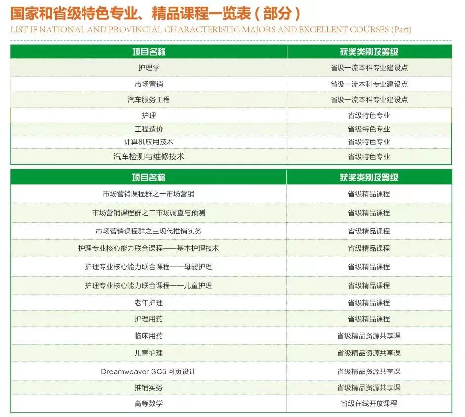 学院不断调整学科专业结构,加强课程建设,改善实验实训条件,建设了4个省级特色专业,3个省级一流本科专业建设点,13门省级精品课程,2个省级教学团队,1个中央财政支持的实训基地项目,1个省级品牌专业群建设项目。