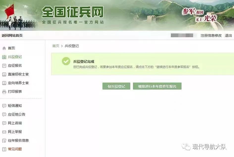 登录系统以后,点击右侧的“开始兵役登记”进行报名工作啦!