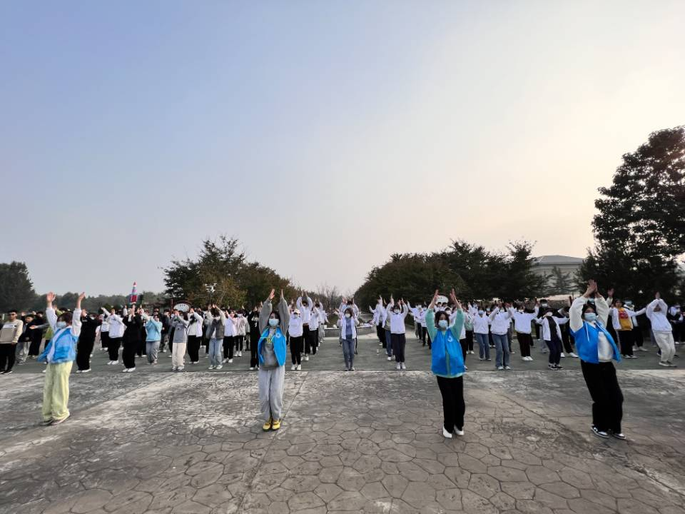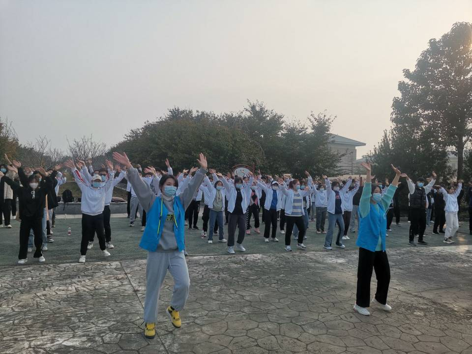接下来,带队老师组织大家跳手语舞和健美操,同唱《我和我的祖国》,祝福祖国繁荣昌盛。