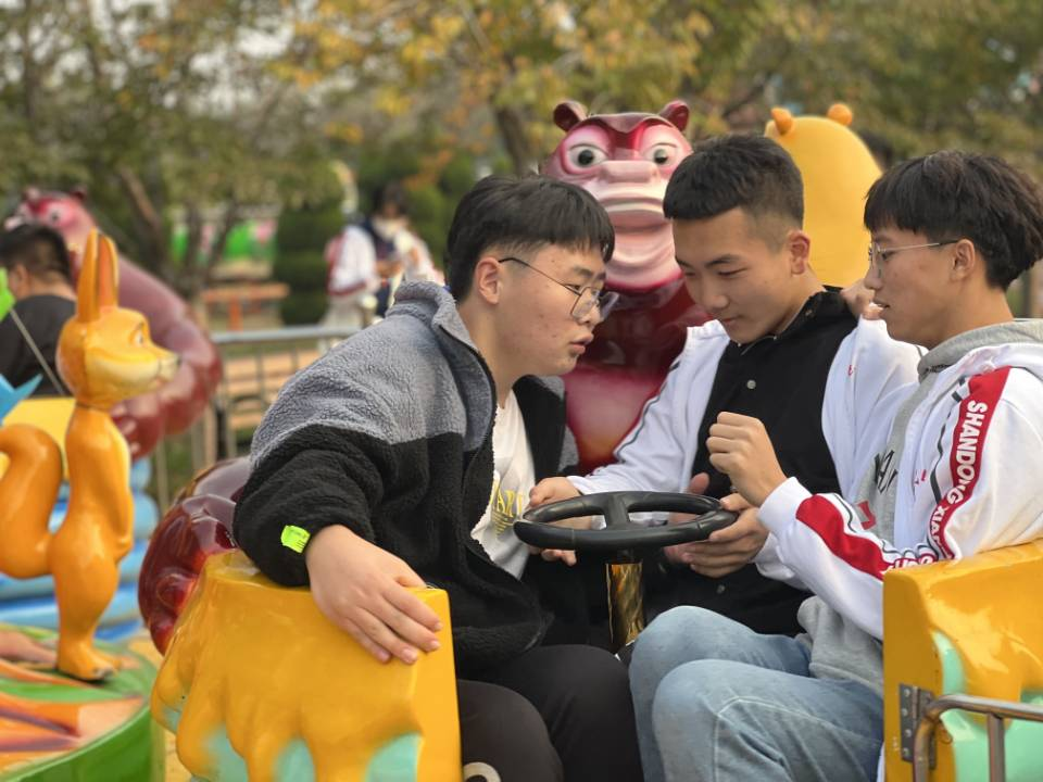 到达目的地后,是个人活动时间,有人欣赏秋日美景,有人拍照留念,有人奔向周围的娱乐设施,他们在这个时候放下了所有的压力展现出了他们孩童般的笑脸。