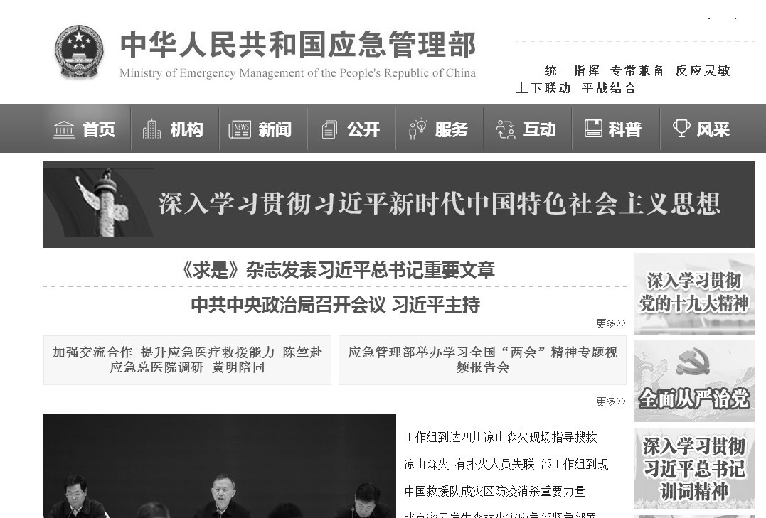 4月1日下午,应急管理部的官网和官方微信变成了黑白色。