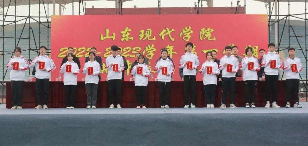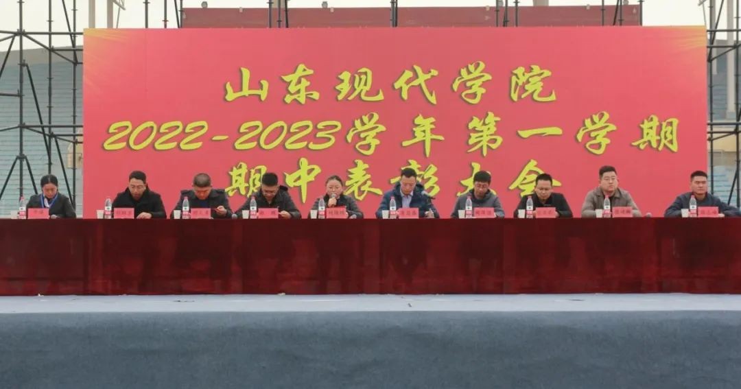 为贯彻落实“立德树人,知行合一”的育人理念,发挥榜样的模范带头作用,引领学风建设。我校于11月10日在万人体育场举行了“山东现代学院2022-2023学年第一学期期中表彰大会”。本次会议由校团委副书记于瑛老师主持,山东现代学院院长助理房昌盛,山东现代学院学生处处长刘锦绣,校团委书记徐志峰,各二级院系负责人以及部分学生代表参加了此次会议。