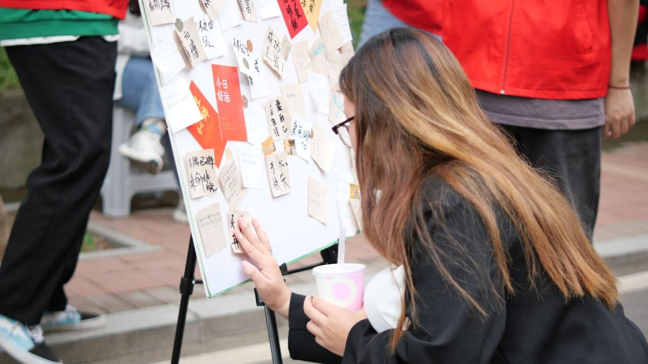为推进心理健康教育管理工作日常化,引导大学生培养健康积极的心理品质,增强心理韧性,9月27日,我校于崇俭餐厅南门举办“朋友听我说·继续往前走”心灵树洞诉说活动。