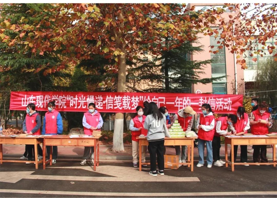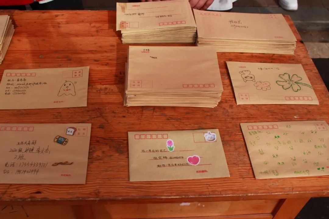 活动过程中,志愿者先是启封并归还去年的信封,然后宣传并讲解活动流程,最后发放新信封并引导同学们在条幅上签名。