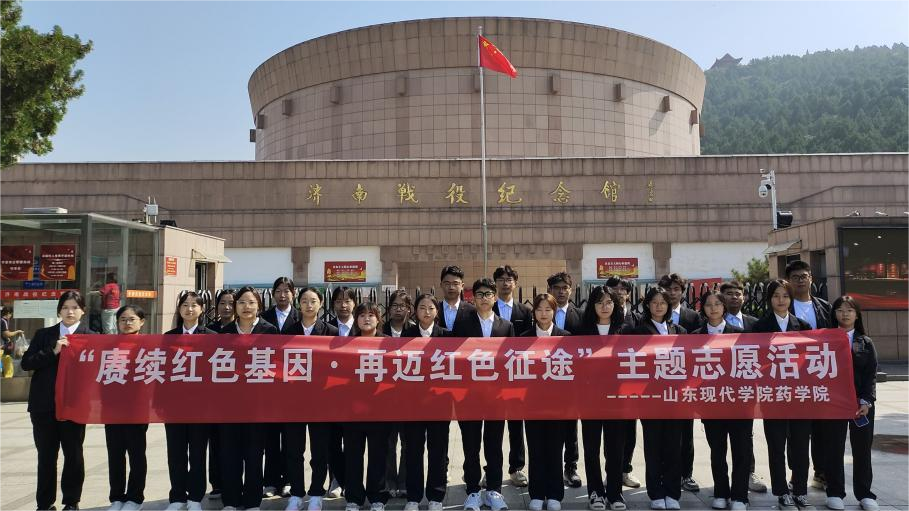 为传承红色基因,赓续红色血脉,祭奠革命英烈,推动学习贯彻习近平新时代中国特色社会主义思想主题教育走深走实,在中华人民共和国成立74周年之际,由共青团山东现代学院委员会主办,药学院团总支承办的“赓续红色基因·再迈红色征途”活动于2023年9月28日上午十点在济南战役纪念馆举办。