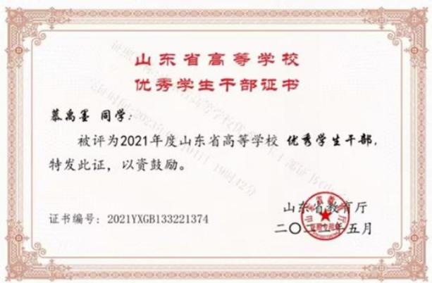 慕禹墨,男,汉族,,中共党员, 电子信息学院 2019 级本科 计算机科学与技术专业学生。 曾获得国家励志奖学金、 山东省优秀学生干部等荣誉称号。慕禹墨同学平时勤奋刻苦,学习成绩优异,作为辅导员助理, 为同学们协调解决学习中遇到的问题,组织同学积极参加各类学科比赛,并取得佳绩。