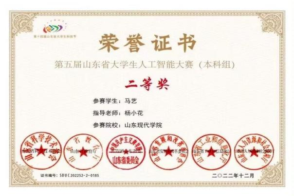 马艺,女,汉族,共青团员, 电子信息学院 2021 级专 科大数据与会计专业 1 班学生。获 2021 – 2022 国家励志奖 学金、 山东省优秀学生,大学生课外学术作品竞赛一等奖、 2022 年全国高校商业精英挑战赛“精创教育杯”山东省总决 赛三等奖、第五届山东省大学生人工智能大赛二等奖、山东 省大学生科创精英挑战赛创新创业竞赛三等奖、第十四届山 东省大学生科技节人才管理三等奖,围绕 “第二课堂对大学生核心竞争力”开展研究,发表学术期刊论文 1 篇;