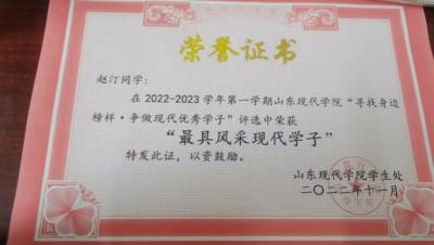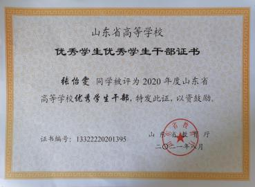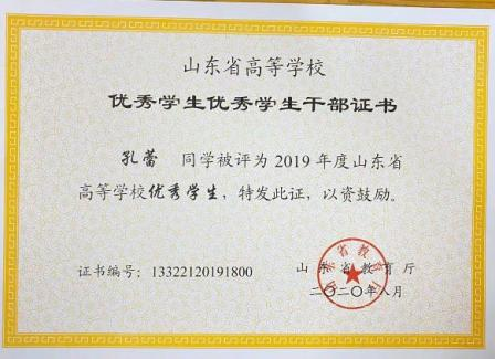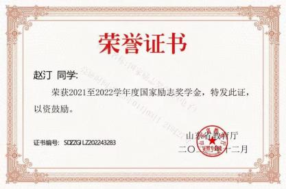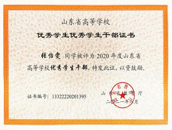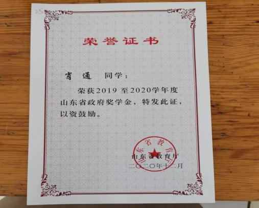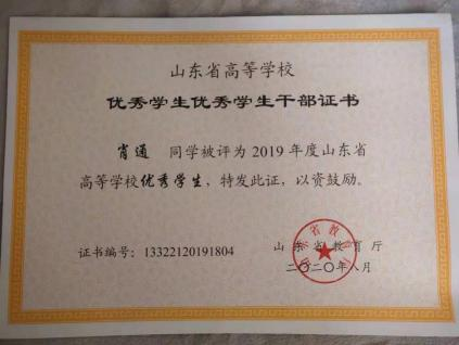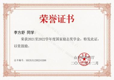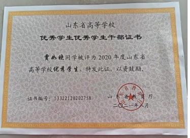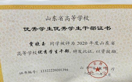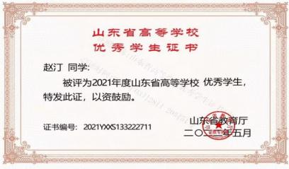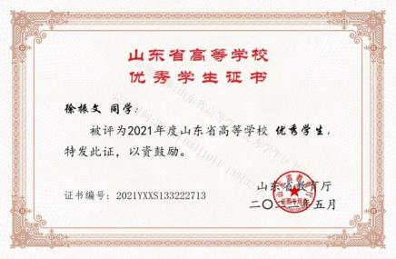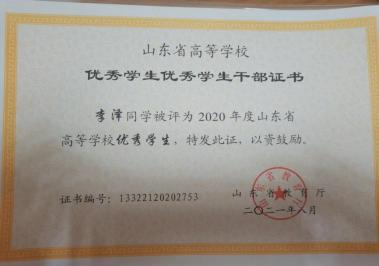 在学习上,他严格要求自己,并且有自己的追求目标,刻苦钻研,勤奋好学。广泛涉猎课外知识,从而提高自身文化素质。 在课外业余时间积极参加学校活动。他每个学期都有自己的集体 目标和规划,使得学习方向更加明确,并能合理安排自己的学习 时间,在大三学年荣获 2021 年度山东省高等学校优秀学生和 2021学年至 2022 学年山东省政府奖学金。