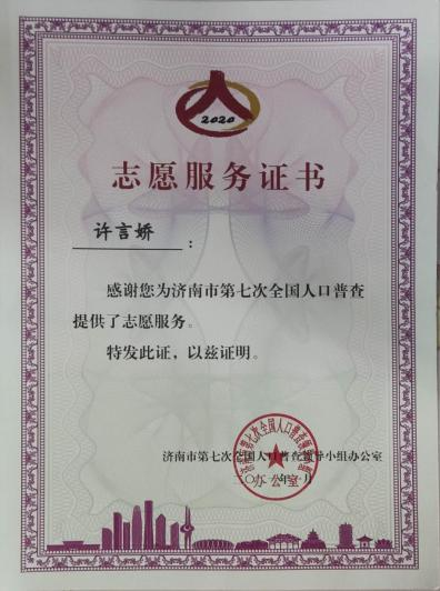 在思想上,许言娇努力提高自身思想素质,在校期间多次发挥党员的先锋模范作用。疫情期间,加入家乡阳光社工志愿服务队,主动参加 “青春扶贫,益暖龙城”集中行动, 并跟随队伍走访多户困境家庭,送去暖冬物资;在校期间, 报名参加“党员抗疫志愿服务队”、“2021 年济南市第七次 全国人口普查” 、 “迎新开学活动”等校内校外志愿服务十余次。