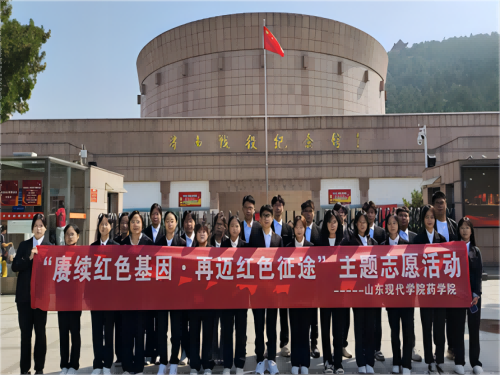 为传承红色基因,赓续红色血脉,祭奠革命英烈,推动学习贯彻习近平新时代中国特色社会主义思想主题教育走深走实,在中华人民共和国成立74周年之际,由共青团山东现代学院委员会主办,药学院团总支承办的“赓续红色基因·再迈红色征途”活动于2023年9月28日上午在济南战役纪念馆举办。走进纪念馆大厅,大家就被庄严的气氛所感染,灰土色的场馆映衬着金色的八个大字,让同学肃然起敬。在讲解员精彩的讲解下,一件件珍贵的历史文物、一篇篇详实的文字记录、一幅幅感人肺腑的影像图片仿佛将同学们带入到了那个炮火纷飞的年代,革命先辈们浴血奋战的画面深深印刻在大家的脑海中,无不对革命先辈们以身殉国、艰苦朴素、投身革命的毅力和品质而感动。此次活动,进一步增强了同学们的爱国主义情感,坚定了尊敬先烈、学习先烈、传承先烈的理想信念,增强了使命意识和责任意识,鼓励引领同学们弘扬红色精神,脚踏实地,为实现中华民族伟大复兴而奉献青春力量!
