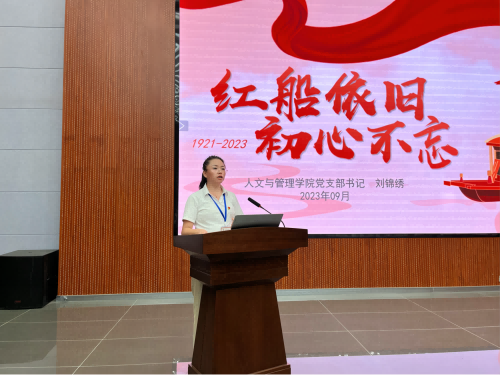 为进一步传承红色精神,赓续红色血脉,厚植家国情怀,引导现代学子做好“红船精神”的坚定捍卫者、忠实传承者、自觉践行者,人文与管理学院党支部于9月6日晚在新图书馆报告厅开展“红船依旧,初心不忘”党课培训。由人文与管理学院党支部书记刘锦绣担任主讲人,人文与管理学院党支部全体党员及入党积极分子参加培训。刘锦绣书记以华为的传奇经历及其曲折发展历程为切入点,将话题引入到红船精神上深入浅出地讲解了什么是红船精神,并强调了红船精神在中国共产党发展历程中的重要作用。并从历史的角度重点分析了“红船精神”产生的原因,从近代以来中国人民救亡图存的奋斗历程,到马克思主义与中国实践相结合给中国革命带来的变化,帮助同学们在历史的洗礼中更进一步地领悟到“红船精神”真正含义。此次培训有利于现代学子学习开天辟地、敢为人先的首创精神,以及坚定理想、百折不挠的奋斗精神和为党为公、忠诚为民的奉献精神,领悟红船精神的深刻内涵。