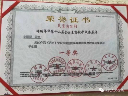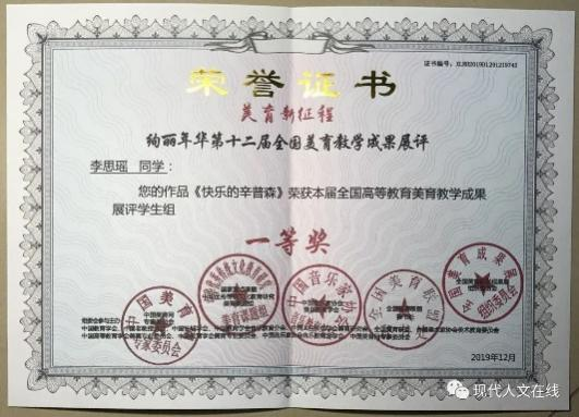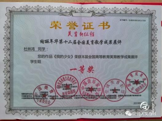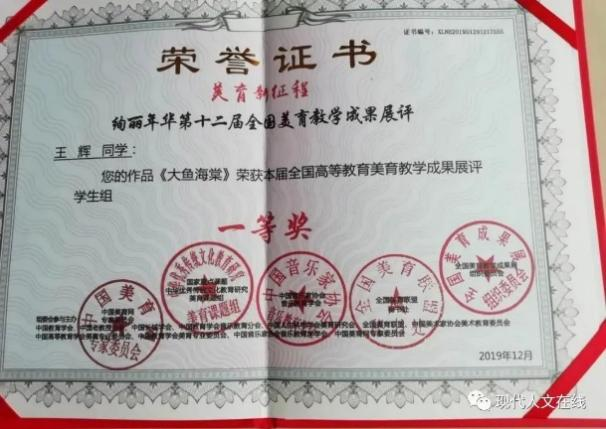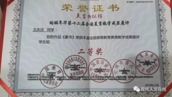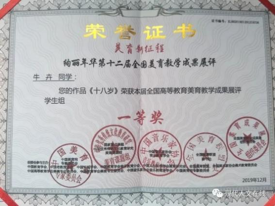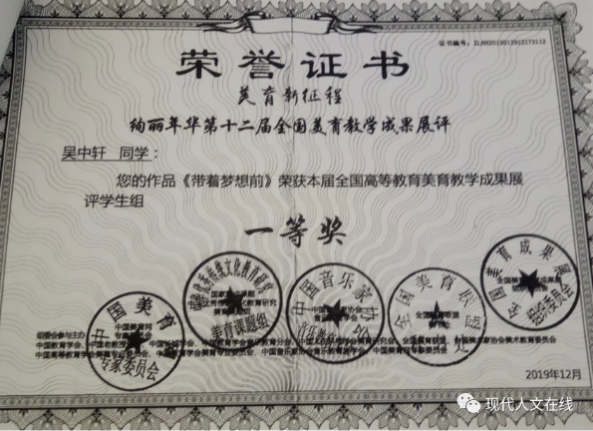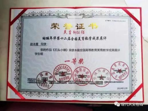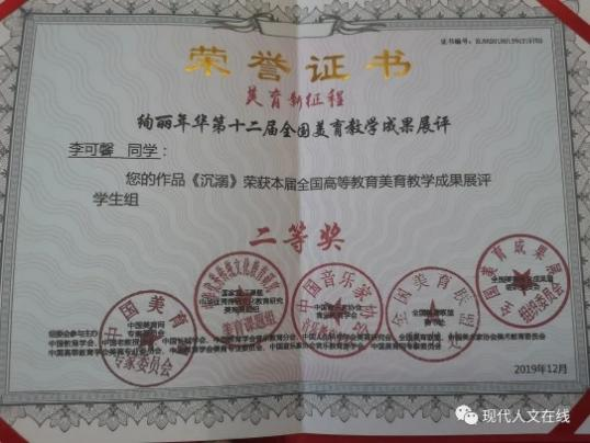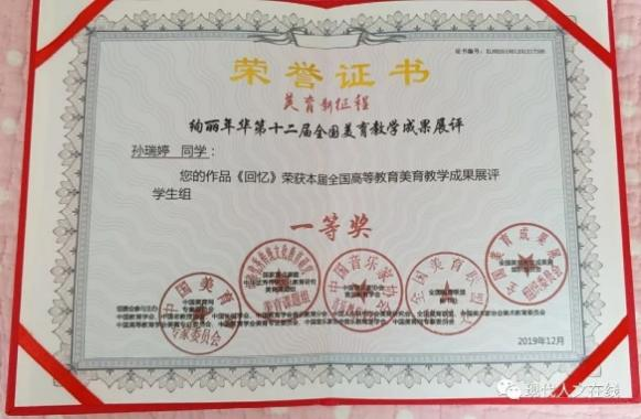 2019年12月,在全国高等教育美育教学成果展评中荣获学生组一等奖;