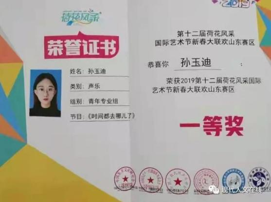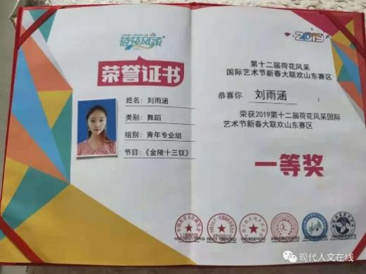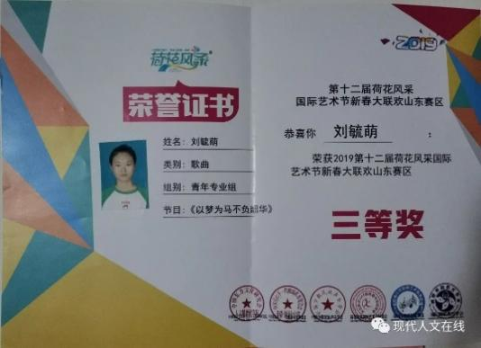 2019年2月,在第十二届荷花风采国际艺术节新春大联欢山东赛区中荣获一等奖;