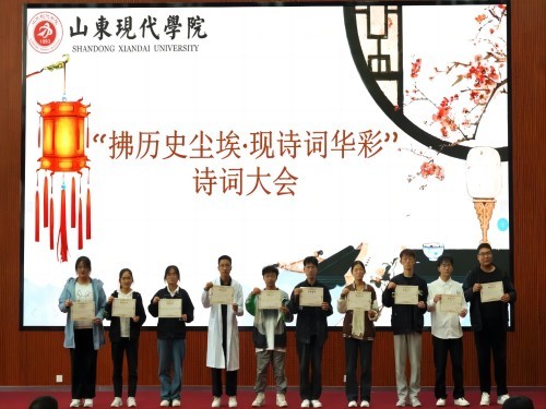 为弘扬中华民族优秀传统文化,提高学生文学素养,激发当代大学生对中华诗词的认同与热爱,10月18日,由共青团山东现代学院委员会主办,学生社团管理部国学社、中华诗词协会承办的“拂历史尘埃·现诗词华彩”诗词大会在新图书馆报告厅举行。“春江潮水连海平,海上明月共潮生”,“三更灯火五更鸡,正是男儿读时”……优美的诗句如同潺潺山泉,滋润着在场学子的心田。诗词大会环节选手们对答如流、思维敏捷,充分展现出了现代学子扎实的文化功底。现场热闹非凡,妙趣横生。精彩博弈过后,获奖名单新鲜出炉。本次诗词大赛为现代学子带来了一场精美的诗词盛宴,提高同学们的文学素养,以赛促学,提升同学们学习中华优秀传统文化的热度、深度与广度。在未来的学习和生活中,希望学子们能够更加积极主动地接受中华优秀传统文化的教育和熏陶,做继承和弘扬中华优秀传统文化的先行者。