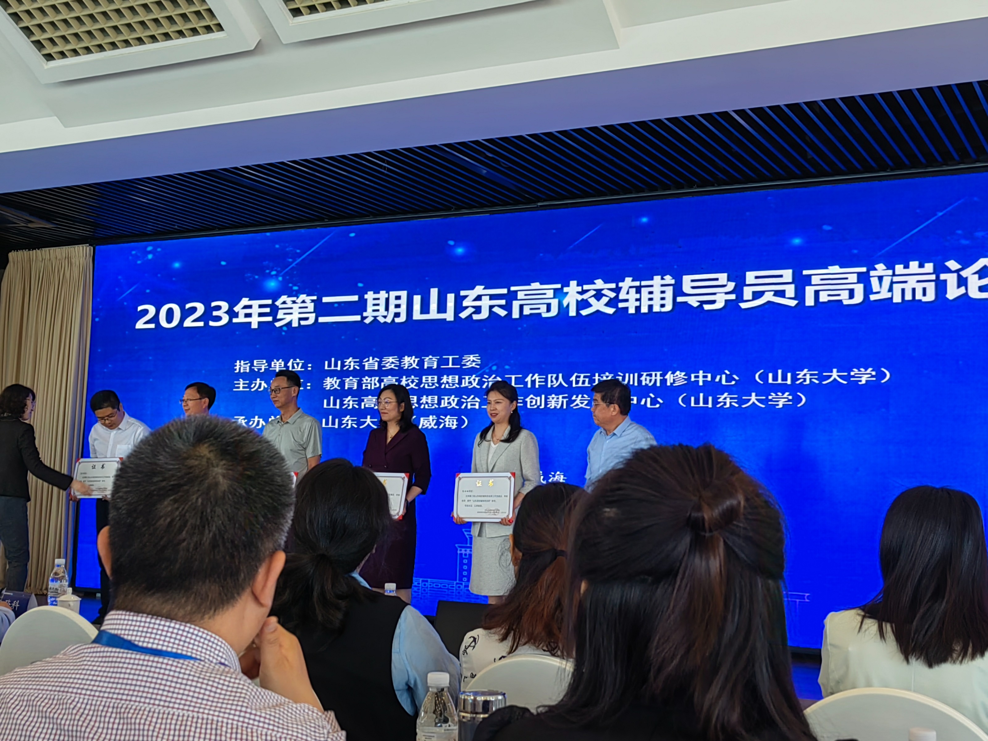 2023年5月25日第二期山东高校辅导员高端论坛在山东大学举办。论坛由山东省委教育工委指导,教育部高校思想政治工作队伍培训研修中心(山东大学)、山东高校思想政治工作创新发展中心(山东大学)主办,山东大学威海分校承办。山东各高校 139余名辅导员代表参加论坛,学校选派工学院辅导员王慧老师参加。