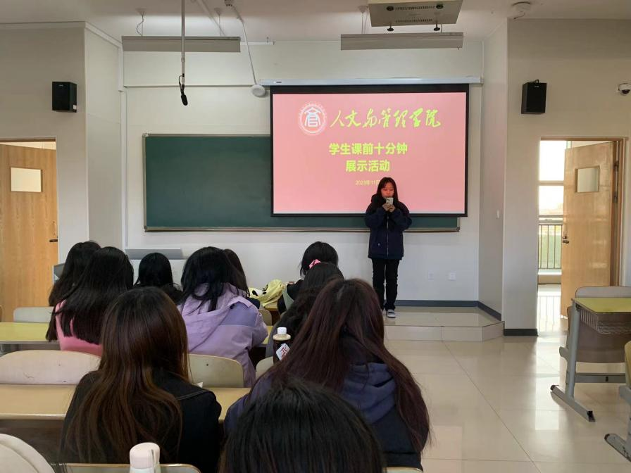 为了增强同学们的文学素养与道德建设,人文与管理学院自10月起,积极在各班班级开展学生课前十分钟展示活动。