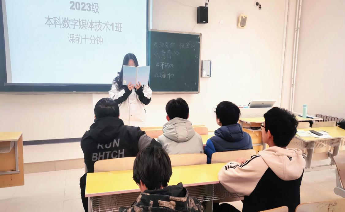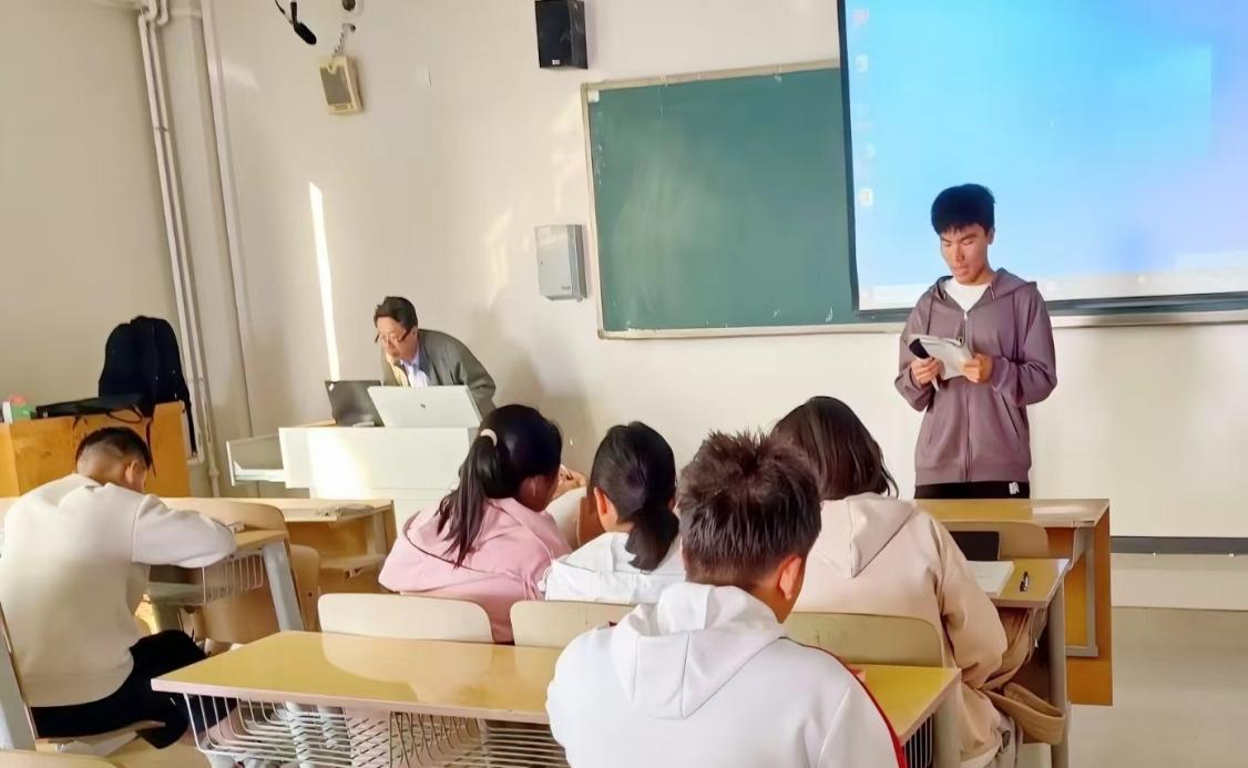 每天上午第一节课前的十分钟,学生们积极地进行自我展示,展示内容丰富多样,包括书籍分享、热点话题讨论、科技趋势预测、个人感悟和学科专业解说等方面。让学生们有更多地展示自我、发展自我、提升自我的机会,促进学生工德智体美劳全面发展。
