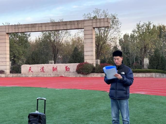 教师代表杜金池老师进行发言,鼓舞现代学子勇立潮头敢为人先,奋发向上有所作为。