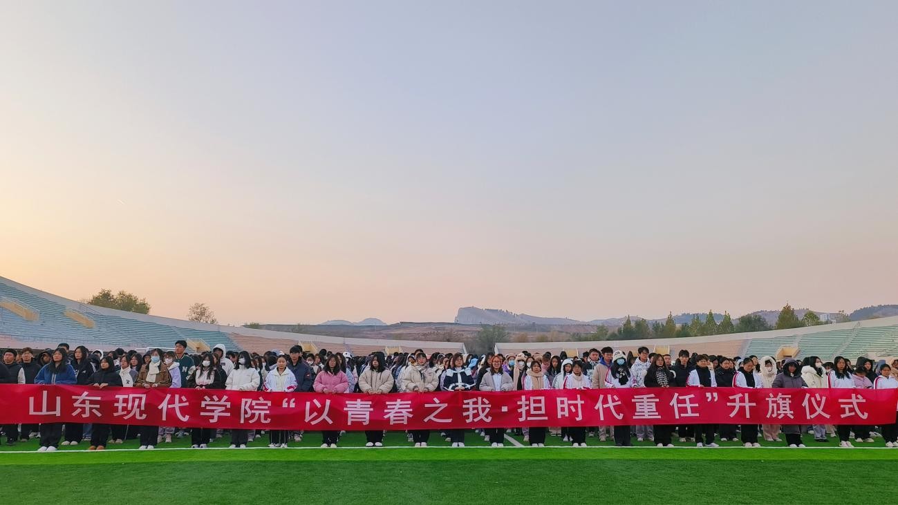 为深入学习贯彻习近平新时代中国特色社会主义思想,进一步弘扬爱国主义精神,激发广大师生的爱国情怀,增强社会责任感和使命感,由共青团山东现代学院委员会主办,电子信息学院团总支承办的“以青春之我·担时代重任”升旗仪式于2023年11月20日在天行健运动场举办。