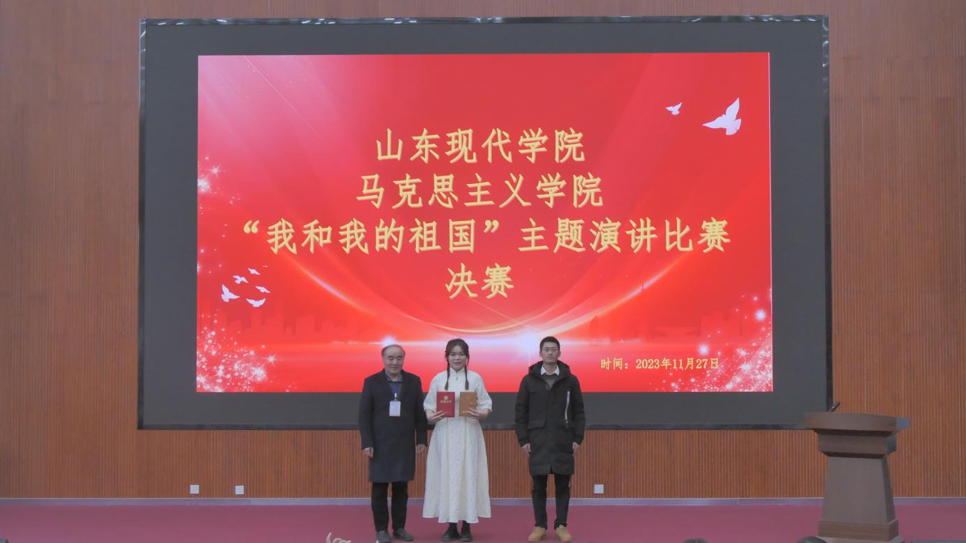 为培养学生的爱国主义情感,增强学生对中华民族伟大复兴的信心,展现学生朝气蓬勃、昂扬向上的精神风貌, 11月27日,由马克思主义学院主办,共青团山东现代学院委员会承办的“我和我的祖国”主题演讲比赛在图书馆报告厅举行。比赛由马克思主义学院院长李黎明教授、校团委社团管理部专职指导教师夏博翔同志、马克思主义学院教师代表冯春艳、王辉、李俏、陈钦林及部分学生参加。