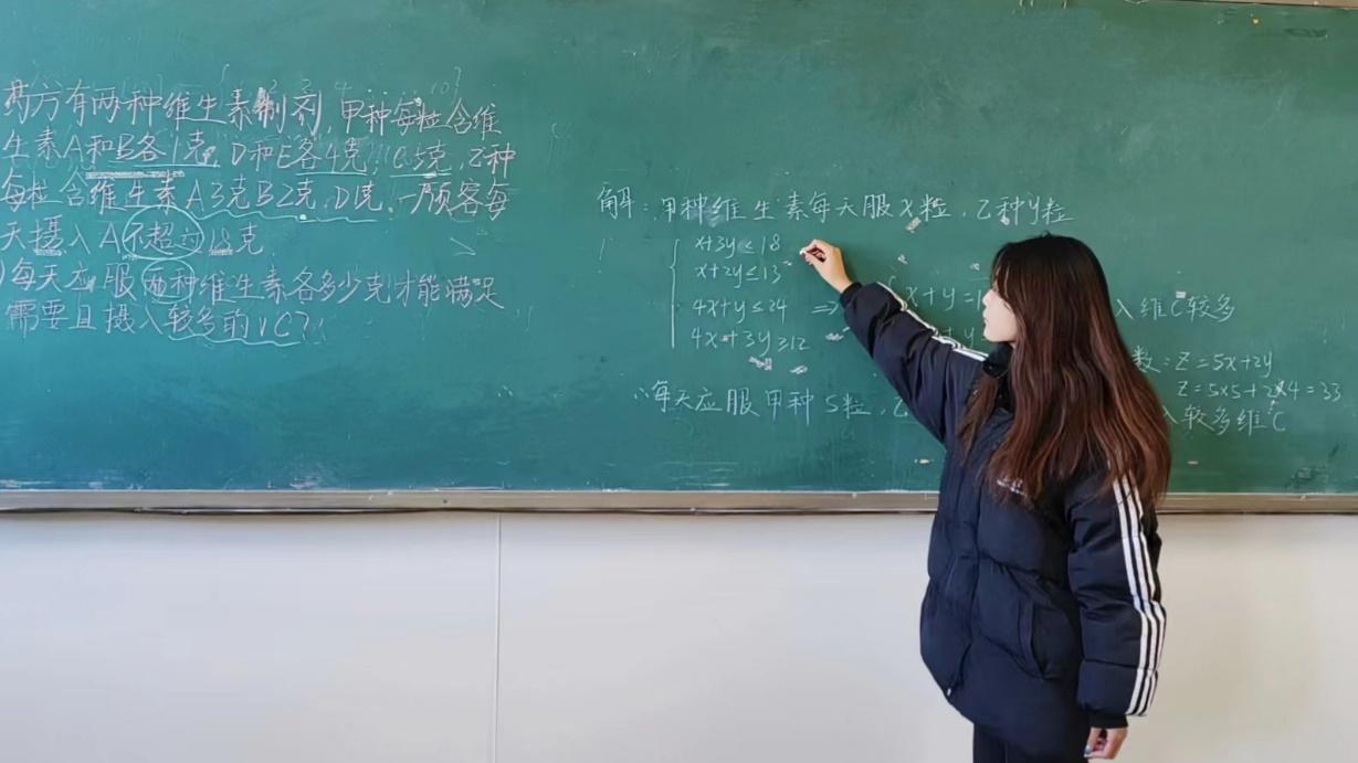 2023级本科人工智能1班程文静手握粉笔,专注地向同学们讲解高数题。程同学将一个复杂的问题拆解成多个简易的步骤,帮助同学们更好地理顺解题思路。