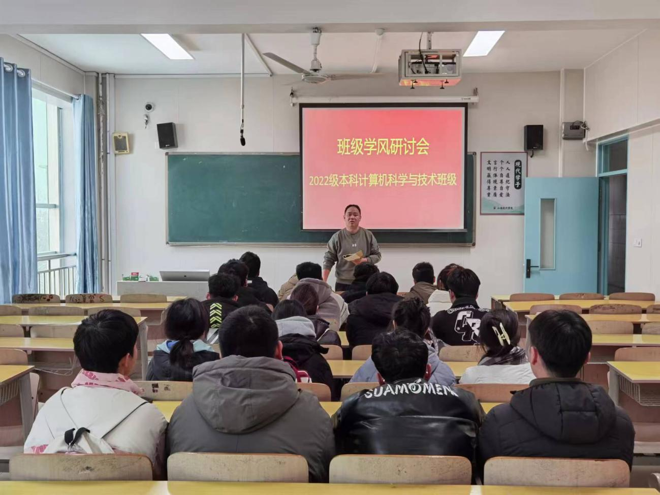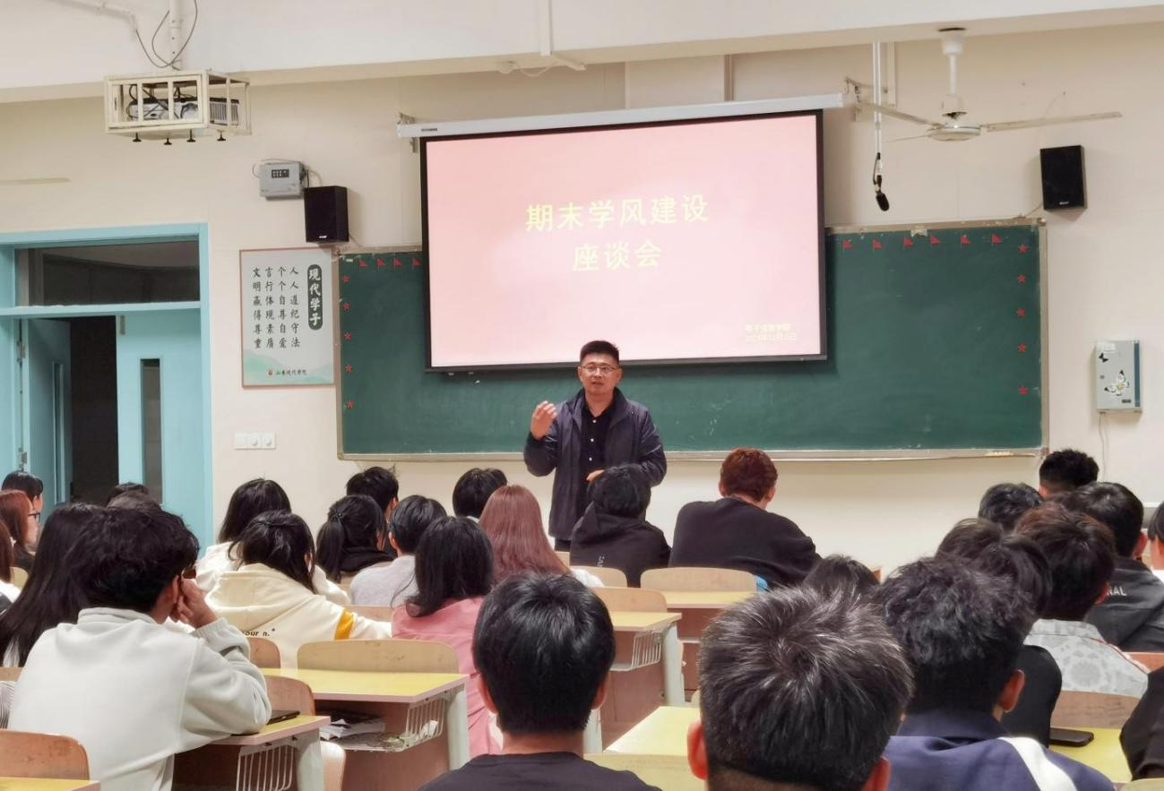 第一阶段,电子信息学院各班辅导员教师积极组织各班班长及班委召开班级期末学风建设研讨会,辅导员结合本班实际情况,围绕班级学习情况、学习方法以及学习态度组织学生展开讨论。老师听取学生意见并进行总结。