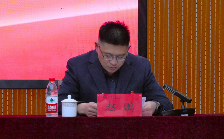 电子信息学院学管就业副院长赵鹏同志宣读《关于举办山东现代学院2023年青年马克思主义者培养工程培训班的通知》。