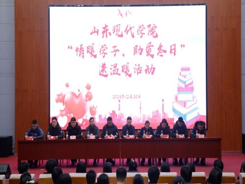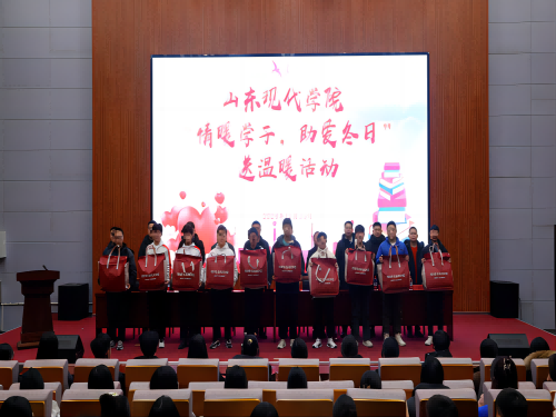 为落实省、市资助中心《关于帮助建档立卡贫困家庭学生解决冬季春节期间生活难题的通知》的文件要求,帮助我校家庭经济困难学生解决冬季生活难题,确保学生安全温暖过冬,鼓励学生树立克服困难的信心,让学生深刻感受党、国家和学校的关爱,增强贫困家庭学生的幸福感。12月26日,在新图书馆报告厅我校隆重举行“情暖学子,筑爱冬日”山东现代学院2023年送温暖活动。