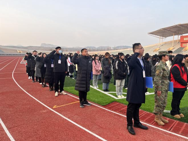 护理学院学管就业秘书豆乐老师宣读习近平总书记2024年新春贺词及刘春静董事长新春贺词,贺词中提到:中国梦是民族的梦,也是每个中国人的梦。新的一年,新的奋斗,新的迸发,让我们以全新的体态迎接挑战,激发了全体师生的斗志。