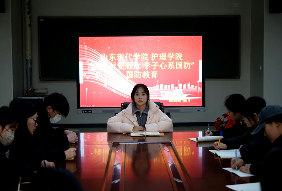 为进一步深化大学生对加强和改进新时代全民国防教育工作的认识,培养学生的爱国主义精神,强化青少年国防观念,由共青团山东现代学院委员会主办,护理学院团总支承办的“踔厉奋发强国防·勇毅前行向复兴”主题活动于2024年3月10日在博学楼309举办。