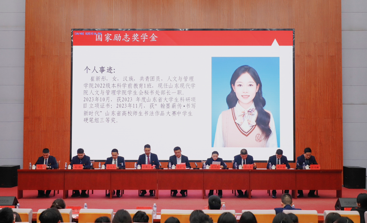 为落实立德树人的根本任务,树立优秀榜样,激励同学锐意进取,营造积极向上的学习气氛,3月13日,我校于图书馆报告厅举办山东现代学院2023-2024学年第一学期学团工作总结表彰大会。大会由学生处、校团委主办,各二级学院负责人、辅导员老师及学生代表参加,校团委书记徐志峰同志主持。