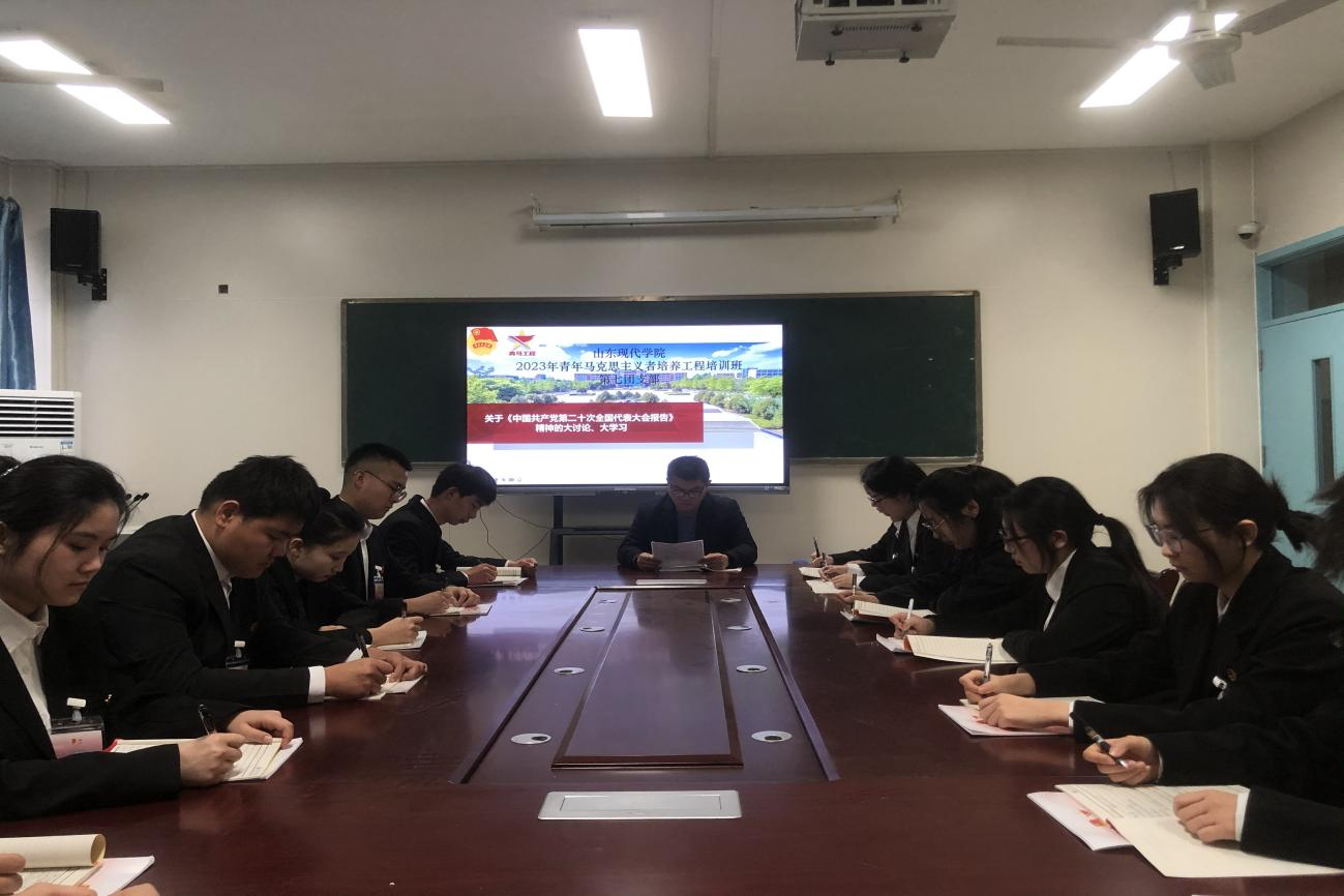 百年历久弥新,风雨展望未来。为深入贯彻习近平总书记关于青年工作的重要思想,切实发挥好“青马工程” 政治引领与人才培养功能,进一步提升现代学子的综合素质,我校青马培训班各团支部于3月7日开展青马工程关于《中国共产党第二十次全国代表大会报告》的学习与讨论。