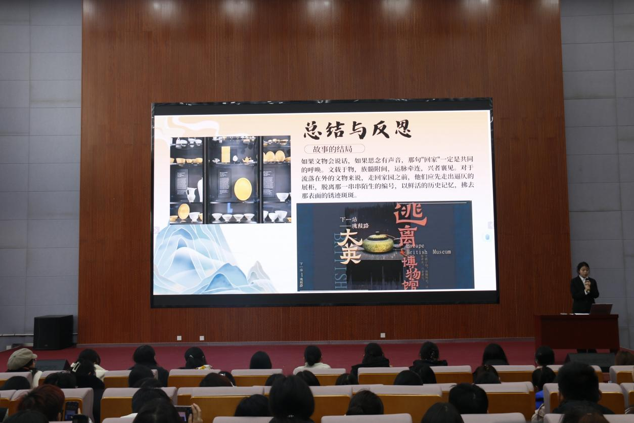 本次现代大讲堂中,宣讲员通过对网络短剧《逃出大英博物馆》的创作背景及其内容的讲解,让同学们对于中华传统文化,中国古代文物及其背后的历史有了更加深入的了解。